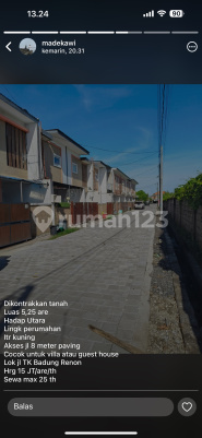 Tanah sewa tukad badung renon luas 5.25 are harga 15 jt per are shm pbb lengkap jalan mobil dko Md kawi