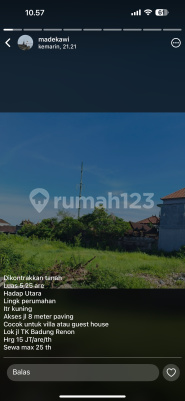 Tanah sewa renon tkd badung luas 5.25 are harga 15 jt per are sewa max 25 th zona kuning shm dko Md kawi