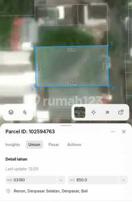 Dijual tanah siap Bangun Lokasi Tkd badung XI Renon Denpasar Selatan Luas Tanah Global 6,5 Are Hanya Dijual 3 Are Lebar depan dpt 9 Meter SHM on Hand Hadap Timur ITR kuning / perumahan Akses Jln 7 Meter Cocok di bangun rumah tinggal Dan kost elite Lingkungan aman dan nyaman Harga 1,2 Milyar / Are NEGO NB ; Pajak masing-masing Pemecahan di tanggung pemilik Bebas pilih sesuai keinginan pembeli cais