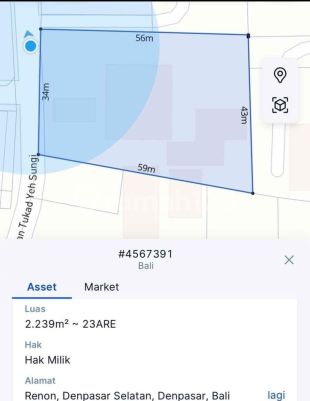 ALWAYS SHINING TOP URGENT DI JUAL TANAH BONUS BANGUNAN PINGGIR JALAN LOKASI TUKAD YEH SUNGI RENON DENPASAR SELATAN Luas tanah 2239M² Lebar depan ±34 M Akses jalan 6 M Hadap barat Shm Imb Harga per 100m² IDR 900.000.xxx Harga Global IDR 20.151.000.xxx