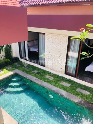 WEST BYPASS SANUR - YEARLY RENTAL Price: IDR 165 Million / Year Charming 2-bedroom villa located in a quiet and secure villa area in Sanur. This property offers comfort, privacy, and a strategic location - only 3 minutes to groceries and coffee shops and 7 minutes' ride to the beach. Perfect for a small family or couple looking for a peaceful home close to everything. The villa faces west, allowing you to enjoy beautiful sunset views, and features a rooftop gazebo overlooking the rice fields - a lovely spot to relax. Property Features 2 Bedrooms with king-size beds AC in each bedroom 2 Bathrooms with large terrazzo bathtubs Water heater in each bathroom Closed living room with AC Fully furnished Private swimming pool Rooftop gazebo with rice field view Indoor private garage 5-meter private access road Safe and quiet villa neighborhood Close to jogging track Land size: 150 m² Electricity: 4,400 Watt Water source: Well water A comfortable and well-located home in Sanur, ideal for long-term living.