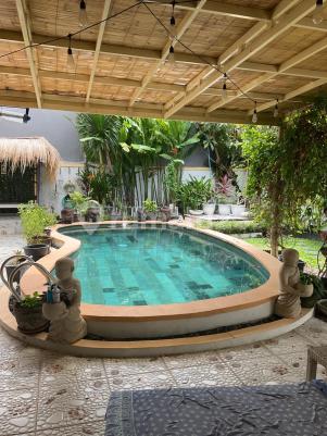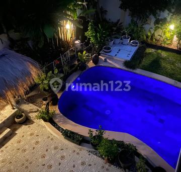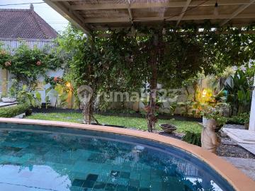 WEST BYPASS SANUR Leasehold: 16 Years Period: February 2026 - February 2042 Price: IDR 3,000,000,000 Beautiful two-storey villa located in a quiet residential area with private dead-end access. Designed for comfortable family living, the villa features one bedroom on the ground floor and two bedrooms upstairs. The property is within easy walking distance to daily amenities and only a 5-minute drive to Sindhu Beach. Fully furnished, it offers a lush green garden and a large swimming pool, creating a peaceful and private living environment. Property Details: Land size: 4 are (400 sqm) Building size: 2 are (200 sqm) 3 Bedrooms 3 Bathrooms Guest toilet Closed living room & kitchen Fully furnished Storage room Maid room Laundry area Large swimming pool Indoor private garage Ideal for family residence or long-term investment in one of Sanur's most desirable residential areas.