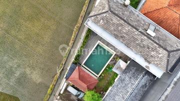 DI JUAL VILLA VIEW SAWAH MENAWAN BERLOKASI SANUR DENPASAR BALI HARGA 7 MILLIAR NEGO - SHM & IMB - luas tanah : 285 m2 - luas bgn : 211 m2 - listrik : 6600 kwh - air : sumur bor, water heater ariston solar panel - kolam renang : 4x8 m2 - 4 kamar tidur + kamar mandi dalam + AC - 1 kamar mandi outdoor - 1 kamar pembantu + kamar mandi - dapur & kitchen set - garasi 4 mobil - 2 kolam ikan koi & arwana - 1 gazebo - Water hiter Hariston solar panel Tanpa listrik - Kayu wulin - kolam Renang Bahan Batu bukan keramik