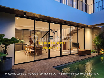 BRAND NEW TROPICAL MODERN VILLA at SANUR AREA for LEASHOLD 29years : - All neighborhood villas - FULL FURNISHED - Land size : 210 sqm - Building Size : 248 sqm - Facing to North - Sunken Living room - Kitchen - 1 Master bedroom ensuite with bathtub - 2 Bedroom ensuite. - 1 Staff bedroom + Bathroom - Laundry room - 4 Air conditioner Daikin - Swimming pool 3 x 6 - Roof top garden - Tropical garden - Electric 7700watts - Water : PDAM & Drilled well. - PRICE : IDR. 5,7 million for 29 years.(Negotiable)