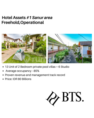 Confidential portfolio offering: three off-market Bali assets available as a bundle — Hotel sanur 1 (13 freehold villas + 6 Studio, approximately 85 percent occupancy), Hotel Sanur 2 (9 villas plus 9 studios, approximately 92 percent occupancy), and a 1-hectare bayview development site in Nusa Dua pre-approved for a 34-Villas. Bundle price: IDR 180 Billions. Owners are motivated to reallocate capital. For confidential materials and private briefings, contact Bali Twoseasons Property.