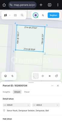 Di jual Tanah Lokasi strategis berada dikawasan Lingkungan villa villa bule di Batur Sari Sanur Kauh Denpasar selatan. Luas tanah Global 6,15 are Bisa di beli 2,15 are dg lebar depan -+14 meter Shm Hadap barat Harga 1,650 M / are.