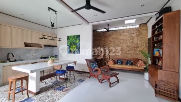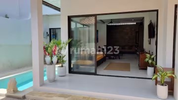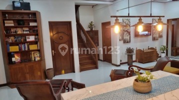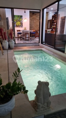 Annual Rental Price: IDR 370,000,000 / Year Discover this character-filled, large 3-bedroom villa in a convenient area of Sanur, offering a generous blend of traditional and modern design. The villa features rich wooden furniture, high ceilings, and an artistic touch, including a unique tiled kitchen floor and an exposed brick feature wall. The spacious indoor living area seamlessly connects to the private courtyard and a refreshing plunge pool, with a charming frog statue overlooking the water. Size: 250 sqm Land / 280 sqm Building (2 Storeys) Layout: 3 Bedrooms, 3+1 Bathrooms, Living Room, Kitchen, Private Pool, Garden, and Garage. Amenities: PDAM Water Supply, 5500 W Electricity. Ideal for a family or long-term resident looking for an authentic yet comfortable home with ample space in Sanur.