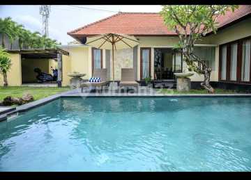 West bypass sanur Yearly rental Price 600 million for 2 years rental with the payment up front. Features: * Spacious home with 3 bedrooms, each equipped with orthopedic mattresses and pillows. - 2 bathrooms and 3 toilets. - ➕ Storage room - extra space for your belongings. - ♀ Large pool for relaxing. Well-maintained grounds covering 5 are (500 m²) - plenty of space for relaxation and enjoying nature. - Enclosed kitchen-living room. - ❄ Air conditioning in each room. - TV with Wi-Fi connection. - Washing machine. - Grill. - Covered parking. Convenient location: infrastructure within walking distance: supermarkets, restaurants, pharmacies everything you need nearby. Only 7 minutes ride to the beach. Indoor private garage