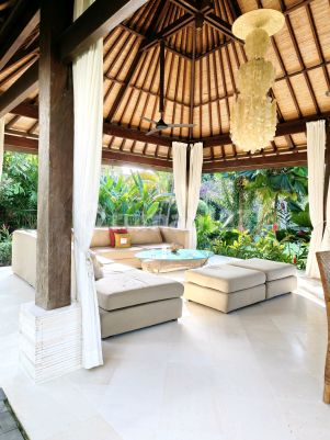Fully furnished. Hadap timur. Area belakang taman di pinggir sungai Ayung. Taman yg luas. listrik 16,500 Air sumur bor Wifi, Cleaners, pool maintenance termasuk. Biaya listrik tidak termasuk.