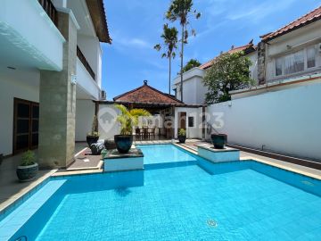 Rumah Semi Villa Dekat Sanur - One Gate System Rumah bergaya semi villa tropis modern berlokasi strategis di kawasan tenang dekat Sanur, dengan sistem keamanan one gate system dan penjagaan 24 jam. Spesifikasi: - Luas Tanah: 470 m² - Luas Bangunan: ±350 m² - Arah Hadap: Barat - Kamar Tidur: 4 - Kamar Mandi: 3 + 1 - Kamar Pembantu: 1 + 1 - Kondisi: Full Furnished - Fasilitas: - Private pool - Dapur bersih & dapur kotor - Ruang keluarga & ruang tamu luas - Laundry area & gudang - Carport untuk 2 mobil - Utilitas: AC di setiap ruangan, water heater, CCTV, internet ready - Legalitas: SHM + IMB Harga: Rp 8,5 Miliar Siap huni - cocok untuk tempat tinggal pribadi maupun investasi villa dekat area Sanur Beach.