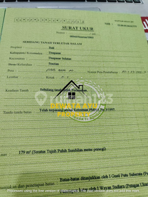 Dijual tanah kosong Lokasi Ceningan sari Sesetan denpasar Selatan Luas tanah 1,79 are Lebar depan 10 meter Orientasi Barat SHM ITR PEMUKIMAN Akses Jln 4 meter Harga 1,350 M global