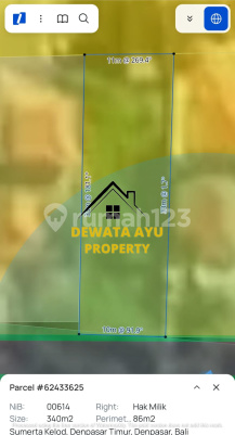 Dijual Tanah siap bangun Lokasi Jln Badak sumerta Kelod Denpasar Timur Dekat ke lapangan Renon Luas tanah 3,4 Are Lebar depan 10 Meter Sertifikat hak milik ITR kuning / perumahan Hadap Selatan Akses Jln 8 Meter Lingkungan Rumah Elite Bagus untk kost elite dan Rumah tinggal Harga 1,7 Milyar / Are