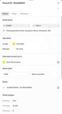 DI JUAL TANAH MURAH DEKAT KE SEMINYAK LOKASI JALAN GUNUNG PAYUNG DENPASAR BARAT LUAS TANAH 3 ARE - ZONA KUNING - AKSES JALAN 4 Meter - HADAP SELATAN - LEBAR DEPAN -+ 26 M - LINGKUNGAN / KAWASAN VILLA - SHM A3 HARGA 700 JUTA PER ARE