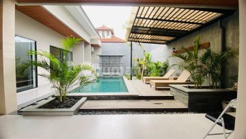 For Rent Brand New Villa 1 Floor Fully Furnished On Jalan Batur Sari Sanur Land area 270m2 Building area 200m2 Bedroom 2 Bathroom 3 Small warehouse Electric 5500 Well water drill Swimming Pool Dining Room Living Room Fully Furnished Kitchen with Kitchen Set Guest Toilet Pan Car + motorcycle truck 5 meter access road #Price 340 Million rupiah Per Year