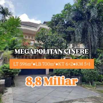 Rumah 2 lantai di Megapolitan Cinere, Depok. Dijual rumah di wilayah yang nyaman dengan pemandangan Dekat Pusat Bisnis. Properti 2 lantai ini berada di lingkungan Dekat Pusat Bisnis. Kategorinya adalah sebagai berikut: - Luas tanah : 596m - Luas Bangunan : 700m - Kamar Tidur: 6 + 2 - Kamar Mandi: 5 + 1 - Sertifikat: SHM - Sertifikat Hak Milik - Kondisi Perabotan: Semi Furnished Tentunya properti ini layak untuk dimiliki karena: Fasilitas Tambahan (Jarang Ada!): Ruang Sauna Ruang Senam Ruang Studio Ruang Fitness Lokasi Strategis - Dekat 4 Pintu Tol: 1. Tol Limo 2. Tol Krukut Depok-Antasari 3. Tol Gandul/Brigif 4. Tol Ciputat - Bisa KPR. - Siap Huni. - Bebas Banjir. - Dekat Akses Bus Kota. - Dekat Pusat Perbelanjaan. - Dekat Akses Tol. - Dekat Tempat Wisata. - Dekat Sekolah Negeri. - Dekat Universitas. - Dekat Fasilitas Kesehatan. - Lokasi dipusat kota. - Dekat Pusat Bisnis. - Kebun Pribadi. - City View. - Cocok Untuk Investasi. - Properti Bisa Nego. - Akses Jalan Muat 2 Mobil. Properti berikut sudah lengkap dengan fasilitas: - Wastafel. - Kitchen Set. - Keamanan 24 jam. - Akses Parkir. - Tempat Jemuran. - Taman. Keberadaan rumah ini terjangkau, hanya selangkah menuju berbagai fasilitas utama dan menarik. Dengan Rp. 8.800.000.xxx, anda bisa langsung dapatkan rumah premium di daerah Cinere ini.