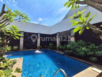 Rumah 2 lantai dng Kolam Renang LT 350 m2 LB 300 m2 Lantai 1 : KT 2 KM 2 R. Tamu 1 R. Keluarga 1 R. Makan 1 Dapur 2 Garasi 3 Carport 1 Lantai 2 : KT 2 KM 1 R.Keluarga 1 KT Pembantu 3 KM Pembantu 2 Gudang / T.Jemur 1 Daya listrik : 5500 watt