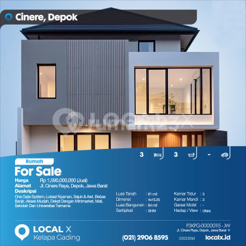 One Gate System, Lokasi Nyaman, Sejuk & Asri, Bebas Banjir, Akses Mudah, Dekat Dengan Minimarket, Mall, Sekolah Dan Universitas Ternama For Sale - Jual Rumah Cinere Raya, Depok, Jawa Barat Harga. Rp 159000xxxxJual) Deskripsi Properti. One Gate System, Lokasi Nyaman, Sejuk & Asri, Bebas Banjir, Akses Mudah, Dekat Dengan Minimarket, Mall, Sekolah Dan Universitas Ternama Luas Tanah. 61 m2 Dimensi. 4x15.25 Luas Bangunan. 84 m2 Sertipikat. SHM Kamar Tidur. 3 Kamar Mandi. 3 Garasi Mobil. - Hadap / View. Utara LOCAL X Kelapa Gading ******** ⓪②① ②⑨⓪⑥ ⑧⑤⑨⑤ P3KPG-0000xxxx-JW-J