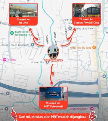 RUMAH SIAPHUNI CLUSTER TANPA DP BISA KPR DI CINERE DEKAT TOL LIMO HARGA MULAI Rp499Jt AN Luas Tanah 40m² Luas Bangunan 60m² Kamar Tidur 3 Kamar Mandi 2 Jumlah Lantai 2 Spesifikasi & Fasilitas Tempat Parkir Sumber Air Air Tanah Sertifikat Spesifikasi Bangunan Pondasi: Batu Kali Struktur: Beton Bertulang Dinding: Bata Ringan Finish Cat Rangka Atap: Baja Ringan Genteng: Galvanum Lantai: Granite Tile Plafon: Rangka Hollow Galvanis Pintu: Solid Smart Look Kusen: Aluminium Sanitary: American Standard Listrik: 2200 VA Fasilitas Lymo House Untuk mendukung kenyamanan dan keamanan para penghuni, Lymo House menghadirkan fasilitas pendukung yang lengkap: One Gate System sistem keamanan Taman Asri Selling Point : 5 menit menuju Gerbang Tol Limo, memudahkan akses ke jalan tol utama. 15 menit ke Stasiun Pondok Cina, ideal bagi pengguna KRL Commuter Line. 20 menit menuju Terminal Pondok Cabe, pilihan transportasi antar wilayah Depok Fasilitas Kesehatan Terdekat menawarkan kemudahan akses ke fasilitas kesehatan terdekat, memastikan penghuni mendapatkan pelayanan medis dengan cepat: 7 menit ke Puskesmas Limo, fasilitas kesehatan dasar terdekat 15 menit menuju RS Asyifa Depok, rumah sakit dengan layanan umum dan spesialis 19 menit ke RS Permata Depok, rumah sakit swasta terpercaya Fasilitas Pendidikan Terdekat : 5 menit ke UPN Veteran Jakarta, kampus ternama di selatan Jakarta 7 menit menuju SMAN 6 Depok, sekolah menengah atas unggulan 9 menit ke SMK Yadika 12, sekolah kejuruan dengan program unggulan Fasilitas Perbelanjaan : 13 menit menuju Pasar Pagi Kolong Tol, pusat belanja kebutuhan harian 13 menit ke Depok Town Square (DETOS), mall modern dengan berbagai tenant terkenal 20 menit ke The Park Sawangan, pusat belanja dan hiburan keluarga terbaru di Depok Sarana Tambahan dan Landmark juga dekat dengan berbagai tempat wisata dan landmark populer: 8 menit ke Arthayasa Stables & Country Club, tempat berkuda sekaligus rekreasi keluarga 15 menit menuju Depok Fantasy Land, taman bermain dan kolam renang untuk keluarga 17 menit ke Stadion Merpati, area olahraga dan kegiatan komunitas Info lebih lanjut hub : Online property 08569159xxxx