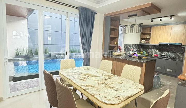 DIJUAL RUMAH FULL FURNISH ADA KOLAM RENANG PRIBADI DI GARDENS AT CANDI SAWANGAN BOJONGSARI DEPOK TIPE GRAND AMITY di jalan boulevard. Luas tanah : 200m2 Bangunan : 250m2 Kamar tidur = 5 kamar - 2 kamar plus kamar mandi dalam ( 1 kamar mandi besar banget) + 2 kamar tnpa kamar mandi. 1 kamar ART di bawah muat 2 orang ada kamar mandi dalam. Kamar mandi : 2 kamar mandi luar + 3 kamar mandi dalam Ada fasilitas apa aja kolam renang, carport utk 3 mobil cartport sudah pake granit anti slip, sudah ada kanopi full, pagar baru sudah diganti yg tinggi, baru diisi april 2024 baru beres renov open space, kitchen set, backdrop tv dan interior kamar habis +- 200juta , kolam renang habis +- 200juta penambahan bangunan +- 560 juta selain itu berjejer samping rumah ada coubhouse, kolam renang club house, tempat gym, indomart atm bca dan mandiri, row jalan 4 mobil. Total renovasi +- 1M Harga jual 3 Milyar Nett yenli, Lyn