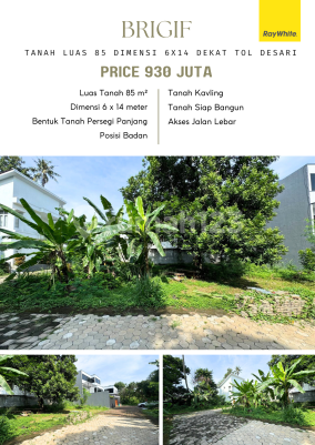 Brigif Gandul Dalam Cluster Dekat Pintu Tol Brigif Depok Antasari Dijual tanah kavling ukuran ideal di dalam cluster dekat pintu tol brigif. Lokasi super strategis, bebas macet. Akses lebar, anti jalan sempit. 1 menit ke pintu tol brigif depok antasari. Luas Tanah 85 m² Dimensi 6 x 14 meter Bentuk tanah persegi panjang Posisi badan Price 930 juta