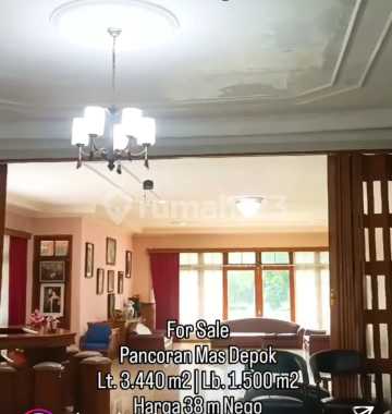 Dijual Rumah Tinggal Mewah & Gedung Pertemuan, ada kolam renang di Pancoran Mas Depok. Spesifikasi: - Luas Tanah : 3.440m2 - Luas Bangunanan : 1.500 m2 - Gedung Pertemuan : 500 pax - 7 ruangan les/ kantor. - Sertifikat : SHM on hand, clean & clear , tangan pertama - Hadap : Timur - Tingkat : 1,5 lantai - Tahun Bangunan: 1989 - K. Tidur : 10 + 10 KM (Bathtub) - K. Mandi : 3 - KT. Pembantu : 2 - KM. Pembantu : 1 - Dapur Kering : 1 - Dapur Basah : 3 - Garasi : 6 mobil - Car Port : 2 mobil - Listrik : 5.500watt ; 7.700w - Telepon : 2 line - AC : 5 unit - Water Heater - Kolam Renang - Taman - Lantai : Marmer - Kusen : Kayu Jati HARGA : 38 M (nego) Selling Point: - Belakang GBI Kamboja - Samping Sekolah Mardi Yuana - Depan Tip top , BCA , Pizza Hut - 5 menit ke tol Juanda - Dekat akses KRL, Transjakarta, Bus Kota - Berminat hubungi: Jenny 081848xxxx eta 05, 09