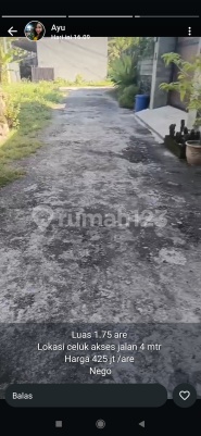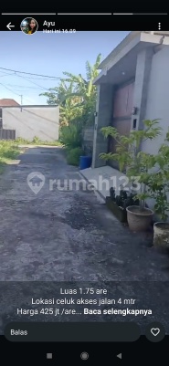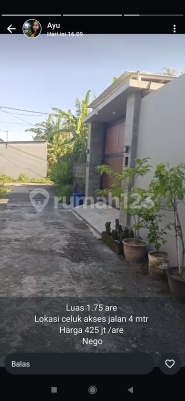 TANAH jual celuk Gianyar luas 175 m2 harga 425 juta per are SHM PBB zona perumahan jalan mobil lingkungan villa dko ayu