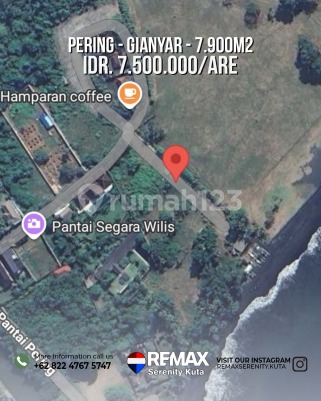 Spesifikasi Tanah: * Luas tanah 79 are / 7.900 m² * Lebar depan 127 meter * Lebar bibir pantai 103 meter * Legalitas 4 SHM * Zona Pink * Kontur tanah datar * Hadap timur & utara (akses 2 jalan) * Jalan aspal 5 meter * Cocok untuk villa, beach club, investasi, dll Harga: 750 juta / are (7,5 juta/m²) - nego tipis