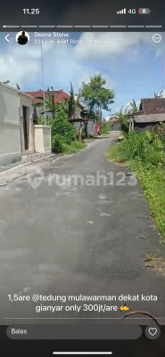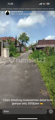 Jual tanah siap bangun tedung kota Gianyar luas 1.5 are hrga 300 jt per are shm PBB zona kuning dko dexna