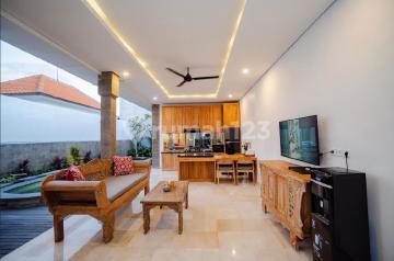 2 bedrooms Villa , Full Furnished , has green rice field view at the back of the villa . New Building , good condition.