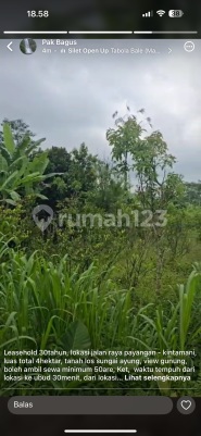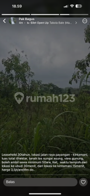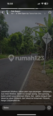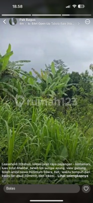 Tanah sewa Payangan kintamani Luas 400 are Min sewa 50 are Harga 3.5 JT per are per th Bisa sewa 30 th SHM PBB Jalan utama View sungai hutan Dko pak bagus