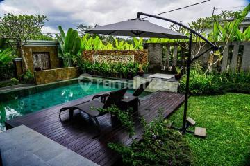 Villa For Sale near Ubud (15 minutes) Location at Pejeng village land size 314 m2 floor size 390 m2 3 bedroom 3 bathroom balcony view area private pool lush garden modern kitchen wooden and good material private villa area with security post facing north maountain view and paddy nice for holiday and yoga shm(freehold) IDR 6 billion