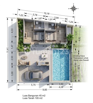 Dijual villa dengan view sawah berlokasi strategis di Pering, Blahbatuh, Gianyar. 9 menit ke RS Kasih Ibu 14 menit ke Pantai Saba 10 menit ke Air Terjun Tegenungan 15 menit ke Bali Safari Marine Park 15 menit ke Pasar Seni Sukawati 20 menit ke Bali Zoo 25 menit ke Bali Bird Park 30 menit ke Ubud 30 menit ke Living World Denpasar 33 menit ke Bali International Hospital 35 menit ke Sanur 35 menit ke ICON Mall Luas tanah mulai 100 m2 - 200 m2 Luas bangunan 45 m2 2 kamar tidur 2 kamar mandi Ruang tamu Dapur Kolam renang ukuran 6m x 3,5m Carport 1 mobil Listrik 4400 watt Sumber air sumur bor SHM & PBG / SLF Harga jual muali IDR 1,234 M *Harga sudah termasuk biaya BPHTB, balik nama dan notaris AJB