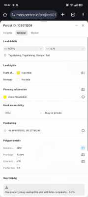 This land is located in Andong, Peliatan, just minutes from central Ubud and close to the well-known Kamandalu Ubud resort. The plot is surrounded by villas and rice fields, providing a serene residential atmosphere while remaining easily accessible to cafes, restaurants, and daily amenities. The property sits in a yellow zone, making it suitable for residential development. With a flat surface and regular shape, it offers excellent potential for building a private villa or a small-scale investment project. The leasehold is secured for 30 years. Key details : - Land zone: Yellow zone (residential) - Permit : Hak Milik - Price : IDR IDR 8.994.000 / are / year - Leasehold for 30 years BALIMMO PROPERTIES - Contact us for more information.
