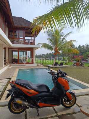 Dijual villa jalan utama jalan Cinta Tirta Tawar Ubud Lantai 2 Luas 5 are (Bangunan 3 are, halaman 2 are) Kolam besar 8x4 mtr Pool Deck Kayu Bengkirai Ruang tamu 2: Enclosed living Open living Garden Floating Deck Garasi: Parkir motor pribadi Mobil besar 1 (2 city car) Jalan utama jalan cinta ubud (Tembok bisa dibongkar dan dijadikan parkir mobil sampai 4 mobil) Ijin tanah Zona Kuning Harga jual 7,5 M / Nego