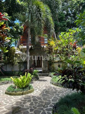 Dijual Tanah Bonus Bangunan Villa Lumbung di Jalan Utama Sanggingan Ubud Lokasi Strategis Spesifikasi Luas Tanah : 2.300 m2 ( 5mx 52m) Luas Bangunan : 274 m2 2 Lantai Hadap : Selatan dan Barat 8 Kamar tidur 8 kamar mandi Listrik 23.000 watt air sumur Bor Carport Untuk 4 mobil Water Heater Harga Jual 35 M Total