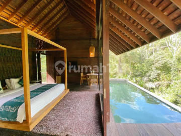 Dijual villa ready unit dengan konsep bangunan modern minimalis natural dengan kayu-kayu ulin dan amazing view lembah hijau dan sungai, di Ubud, Gianyar Bisa dimanajemenkan, untuk mendapatkan ROI 1 Bedroom Pool Villa Land size 120 m2 Building size 80 m2 Fully Furnished. 1 Bedroom 1 Ensuite bathroom Jungle and River View Harga 2,75 M - Core 4-star amenities such as: + Lobby + Restaurants & Bars + Spa Bale + Wellness Area (Yoga, Pilates) + Romantic Dinner (over the river) + Wedding Venues + Jungle Track & Creek + Relaxing Deck (River & nature view) Strategic Areas ◇ Tegalalang Rice Terrace (15 min) ◇ Ubud Center (15 min) ◇ Monkey Forest (10 min) ◇ Campuhan Hill (10 min) ◇ Tirta Empul (25 min)