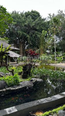 1. Private access to villa is included on certificate & free hold ceritificate 2. Spacious garden area to accommodate weddings and events 3. Jati wood build throughout 4. 500 meter fish pond 5. Crafted with antique Jati wood it was envisioned by the esteemed architect Cheong Yew Kuan renowned for his work with esteemed resorts such as Aman, Four Seasons, Como and Alila, as well as celebrity homes 6. 5 star hotels such as Four Seasons in vicinity 7. All utilities are 5-star standard, with fully air-conditioning in all bedrooms, media room and dining room 8. Private jacuzzi & private basement (made of stone) for drinking wine 9. 15m infinity pool overlooking Sayan ridge 10. Wine cellar, billiard table, private spa & yoga place 11. Family room and reading room 12. Tree top house & "bale bengong" for sightseeing & relax area 13. King size bed in and tv in every bedroom 14. Outdoor massage room with views 15. Staff sleeping quarters 16. Service area 17. Security room 18. 10 minutes from the art centre of Ubud 5.7 km to Campuhan Ridge 7.8 km to Monkey Forest 13 km to Tegallalang Rice Terrace 34 km to airport 19. The villa sits in a mature garden planted with 800 species of trees and plants 20. The house has been entirely built from recycled iron wood (vintage) 21. The property is situated on Sayan Terrace, overlooking the Ayung river valley and just south of the Four Seasons Resort, Mandapa Resort, etc 22. The estate seamlessly blends Japanese, Balinese tropical, and modern influences 23. A 12 ton stone was placed near the entrance to the swimming pool 24. Furniture with trembesi wood table (2mx2mx50cm) 25. Bathroom 1: sink & bathub made by whole big solid stone 26. With its breathtaking landscape of the Sayan forest, this estate offers the perfect backdrop for events, retreats, weddings, or any celebration, promising an unforgettable blend of Balinese luxury and natural splendor 27. A lot of valuable of art crafts
