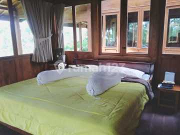 FREEHOLD Joglo Cottage Serenity and Green Ubud Payangan Located: Desa Kerta Payangan, Ubud (300 meters before yellow bridge) Occupancy rental price 240 million/year for 30 year leasehold Legality: FREEHOLD/SHM IMB & 3 business permits: restaurant/Spa/Yoga in good condition Specifications: Land area: 16.25 Are/ 1,625 sqm Building area: 262 sqm • 5 traditional Javanese/cottage style buildings with iron wood and Ulin floors • Spacious 1 Limasan Restaurant + Kitchen (102 m2 ) • 1 Dining Room • Built 2020 Details: - 2 gladak/villas 40 m2 - 2 gladak 4 rooms/spa 20 m2. - Each bathroom is equipped with a 30 liter Ariston water heater - Semi-furnished property to discuss with buyer - Large private car park - Public concrete road access 4 meters wide - Electricity: 7700 Watts (pulse) + 10000 watts electric stabilizer, French standard Schneider installation. - Water is taken from a depth of 75 meters with a Shimizu submersible pump + booster pump + 2000 liter tank. - 2 organic septic tanks 3000 liters. - Private internet tower 24 meters high. The west orientation faced the majestic forest in the green zone, therefore it cannot be built on Points of interest: - Distance from Ubud center: 21km/35 minutes - Distance from Kintamani/Mount Batur: 13 km/20 minutes - Distance from airport: 53km/90 minutes ●Freehold price 5.8 Billion
