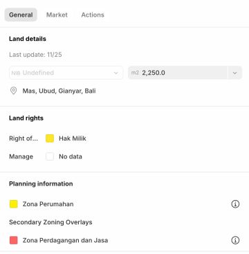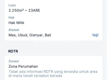 TOP FOR SALE!!! Best Price Rp. 925 jt/are (nego) Onsale Sebidang Tanah Berlokasi Jl. Utama Mas, UBUD, Gianyar. Lokasi Strategis Sangat Cocok untuk segala Macam Usaha / Tempat Tinggal. Prime Location : Dekat caffe, minimarket, dan resto Dekat tempat ibadah Dekat tempat gym Detail Luas Tanah 2250 m2 Lebar Depan 24 meter Hadap Timur Zona Perumahan Jalan Utama 8 meter SHM / FREEHOLD