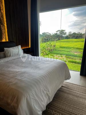 Rice Field View Villa - Sangeh Lokasi strategis: - 190 m dari jalan utama - 5 menit Sangeh Monkey Forest - 15 menit Raya Sayan Ubud - 19 menit Green School Spesifikasi: - Status: Freehold / Leasehold - Luas tanah: 248 m² - Luas bangunan: 200 m² - 2 lantai | Menghadap utara - 3 kamar tidur en-suite (master dengan jacuzzi) - Infinity pool view sawah - Closed living + home theater - Dapur lengkap, area makan & kerja - Gym dengan pemandangan - Bore well - Listrik 7.700 watt - Carport: 1 mobil + 5 motor - Fully furnished - Legalitas lengkap: SLF & PBG