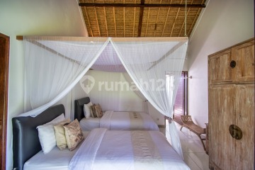 Experience peaceful Ubud living in this spacious four-bedroom estate located in the serene village of Pejeng. Designed for comfort and relaxation, the villa features four generous bedrooms and four bathrooms, offering plenty of room for family, guests, or rental possibilities. The property includes a bright living room, a welcoming terrace, and a balcony that invites you to enjoy the surrounding nature. Outdoors, you'll find a sun terrace, lush garden, and a refreshing swimming pool with beautiful views-perfect for unwinding in Bali's tropical atmosphere. Situated in an ideal location, the villa is close to Ubud's cultural landmarks, including Goa Gajah (4 km), Saraswati Temple (7 km), and Monkey Forest Ubud (8 km). It also offers easy access to popular wellness retreats and renowned nature-inspired cafés and restaurants. A wonderful choice for anyone seeking a tranquil home or a promising investment in one of Ubud's most charming and scenic neighborhoods. Within the same complex, there is also another three-bedroom villa with private access. Both villas perform very well when offered together as a spacious seven-bedroom family rental. A special price is available for purchasing both properties as a package.
