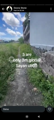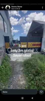 Tanah di jual bonus rumah sayan Ubud luas 5 are harga 3M jalan mobil dko dexna