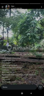 Jual tanah murah mas ubud luas 29 are harga 400 jt per are SHM PBB zona Kuning jalan mobil cocok Kavling kompleks villa dko yasa ayu