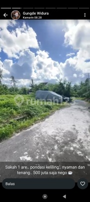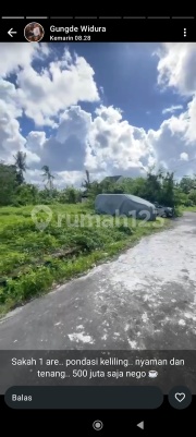Jual tanah sakah luas 1 are 500jt total SHM zona kuning jalan mobil lingkungan villa dko widura