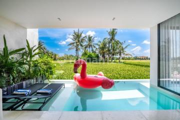 Hello Subleaser Welcome to the new stunning GREEN FLOW villa complex in Ubud! Nestled in a peaceful and picturesque setting with beautiful views of rice fields and jungle, each villa offers a truly luxurious experience. All villas have a private pool and are perfect for a romantic getaway, honeymoon, short vacation or place you can call home Details : Land size 115sqm 2 bedrooms ensuite Open living room Marble kitchen top with utensils Swimming pool Smart lighting concept Rooftop Terrace Spacious parking One gate system with security Price :IDR 4.5 Billion ( Leasehold 24 Years) Extension Guarantee Bill Hubungi marketing eksekutif kami wa.me/62878xxxxxxxx