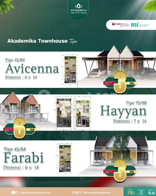 Rumah komersil syar'iah Halal Nyaman Mewah Tersedia dua type Type Avicenna LB 45-LT 84(Lt 6x14) ️ 2 Kamar Tidur 1 Toilet Dapur ️ Ruang Tamu Carport Start From 399 Juta-an! Harga cash keras 399 juta ✅Free biaya2 ✅free kanopi ✅Free AC ✅Free PPN Harga Cash lunak 399 juta DP 50% ✅Free biaya2 Harga KPR bank 425 juta ✅Free kanopi ✅Free AC ✅ Potongan biaya2 50% Type Hayyan Lb75-LT98(Lt 7x15) Harga cash 750 juta Harga KPR 799 juta :fire: Promo Spesial Bulan Ini! :zap: Promo hanya untuk 2 orang tercepat! Segera amankan unit impianmu sekarang juga sebelum kehabisan! #halalnyamanmewah #propertisyariah #bebasriba
