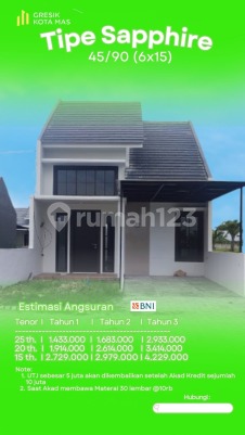 **GRESIK KOTA MAS – Rumah Impian Tanpa Beban!** # *RUMAH SIAP HUNI* # *DP 0%* # *FREE SEMUA BIAYA* # *CASHBACK TUNAI JUTAAN RUPIAH* # *SUBSIDI ANGSURAN SAMPAI DENGAN 24 BULAN* # *Cukup bawa 30 materai saat AKAD!* Dapatkan Bonus: # SHM # Canopy # Tandon Air 1m³ # Top Table Dapur +Sink # Tembok Belakang 1,5m **Transaksi Mudah:** * Booking Fee Rp 500rb * Acc Bank → Bayar UTJ Rp 4,5jt * UTJ **Dikembalikan 5–10 juta** setelah akad * **Subsidi angsuran 24 bulan** * Cicilan cuma **1 juta-an** Lokasi strategis – Fasilitas lengkap - Listrik Underground Promo Terbatas! Buruan booking! More info hub Wahyu 0857xxxxxxxx