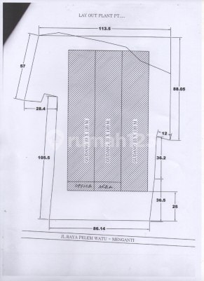 MILIKI Gudang Pabrik Area Jl.Raya Pelem Watu Menganti Gresik Luas kurang lebih 14.000m2 atau 1,4Ha Potongan lahan favorit Kotak-Ngantong ( Hoki ) Lebar depan 80 meter - 110 meter Panjang 150 meter Layout Lahan ada di foto Memanjang besar kebelakang Bangunan kurang lebih 9.000m2 SHGB Hadap Barat *Harga Exclude PPN Janjian survey segera Area Sekitar Raya Kepatihan Boboh Menganti Gresik Jalan Raya Palem Wetu Bumi Maspion Romokalisari Tanjungsari Manyar Dekat Tol Surabaya Mojokerto Industri Pabrik Margomulyo Kandangan Osowilangun