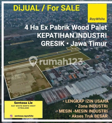 *Ter-MURAH Hitung Tanah Rp.2 Juta-an /m2 , Luas 4 Ha Pabrik Kepatihan Gresik BONUS IJIN Usaha + MESIN* Dijual 4 Hektar Ex Pabrik Zona Industri Kepatihan Industri Gresik JATIM Bonus IJIN Usaha + MESIN Industri *EX Pabrik Wood Palet / Wood Pellet* Lokasi : *Jalan Kepatihan Industri* ( Kel.Kepatihan - kec.Menganti - Kab.Gresik - Jawa Timur ) STRATEGIS : *- Zona Kawasan Industri Kepatihan GRESIK Jawa Timur* *- Dekat Raya Benowo, Raya Kepatihan, Raya Boboh* *- Akses Truk BESAR BONUS : *- IJIN USAHA Lengkap* *- MESIN -MESIN Industri* Spesifikasi: Luas Tanah : 40.048 m2 (4 Ha) Luas Bangunan.+/-8000 m2 Bangunan 1 Lantai - Pintu Gerbang Utama (Hadap : Barat) - Pintu kantor ( Hadap : Selatan) Sertifikat: - SHM (11 Sertifikat) - HGB 1 ( 1 Sertifikat ) *Harga JUAL Rp. 90 M ( Nego)* (NOTE : Hitung Rp.2 juta-an/m2 Nego , Ayo ajukan penawaran Sekarang ,dapatkan investasi Terbaikmu ) Hubungi: *Sentosa Lie* Ray White North West Citraland Surabaya 0819-382-6xxx9 0813-571-xxx-09(whatsapp & Telegram) IG sentosa.raywhite ********