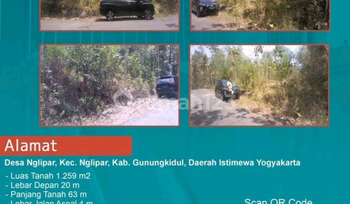 Tanah Murah Di Desa Nglipar, Kec. Nglipar, Kab. Gunungkidul, Daerah Istimewa Yogyakarta Spesifikasi : -Luas Tanah 1.259 m² - Lebar Depan 20 m -Panjang Tanah 63 m -Lebar Jalan Aspal 4 Legalitas SHM Benefit : Lingkungan (750 m dari Pasar Nglipar, 600 m dari Gedung Dakwah Muhammadiyah Nglipar, 550 m dari SMP Muhammadiyah Nglipar) Fasum (Toko, Pasar, Puskesmas, Minimarket, Sekolahan) Harga Rp250.000.xxx nego